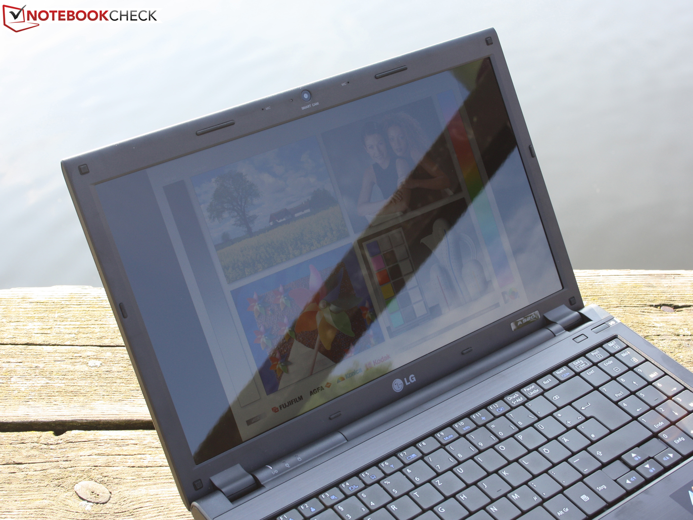 Unser LG A520-T.AE31G 15.6-Zoller ist mit einem 16:9-Panel ausgerüstet. Wir haben es mit Full-HD 1.920 x 1.080 (1080P) zu tun, eine Auflösung, die sich viele Spieler und Bildschirmarbeiter wünschen. Die Glare Type Anzeige ist als LP156WF2-TLA1 (LG-Phillips) auslesbar. Das Panel ist mit eine speziellen Folie bedampft, dem Film Patterned Retarder (FPR), welche auch bei den 3D TVs von LG zum Einsatz kommt.