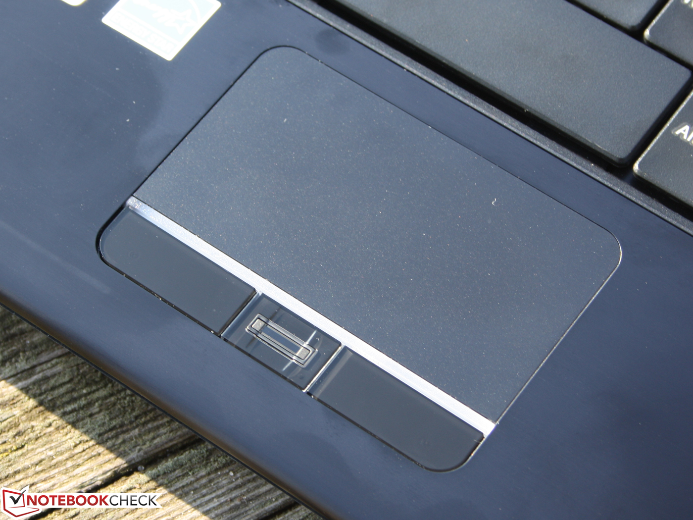 Der Mausersatz ist ein Synaptics Multitouch Pad (V7.2), also ein technisch veraltetes Modell (aktuell: V7.5). Es beherrscht dennoch Mehrfinger-Gesten, wie z. B. für den Zoom mit zwei Fingern. Die glatte Oberfläche des kleinen Pads bedient sich zügig und ist bis in die Ränder sensibel. Die Tasten klicken leise, haben aber einen zu kleinen Tastenhub (kurzatmig). Der kurze Druckpunkt kommt direkt nach dem Berühren, was das Tastenfeedback insgesamt erträglich macht.