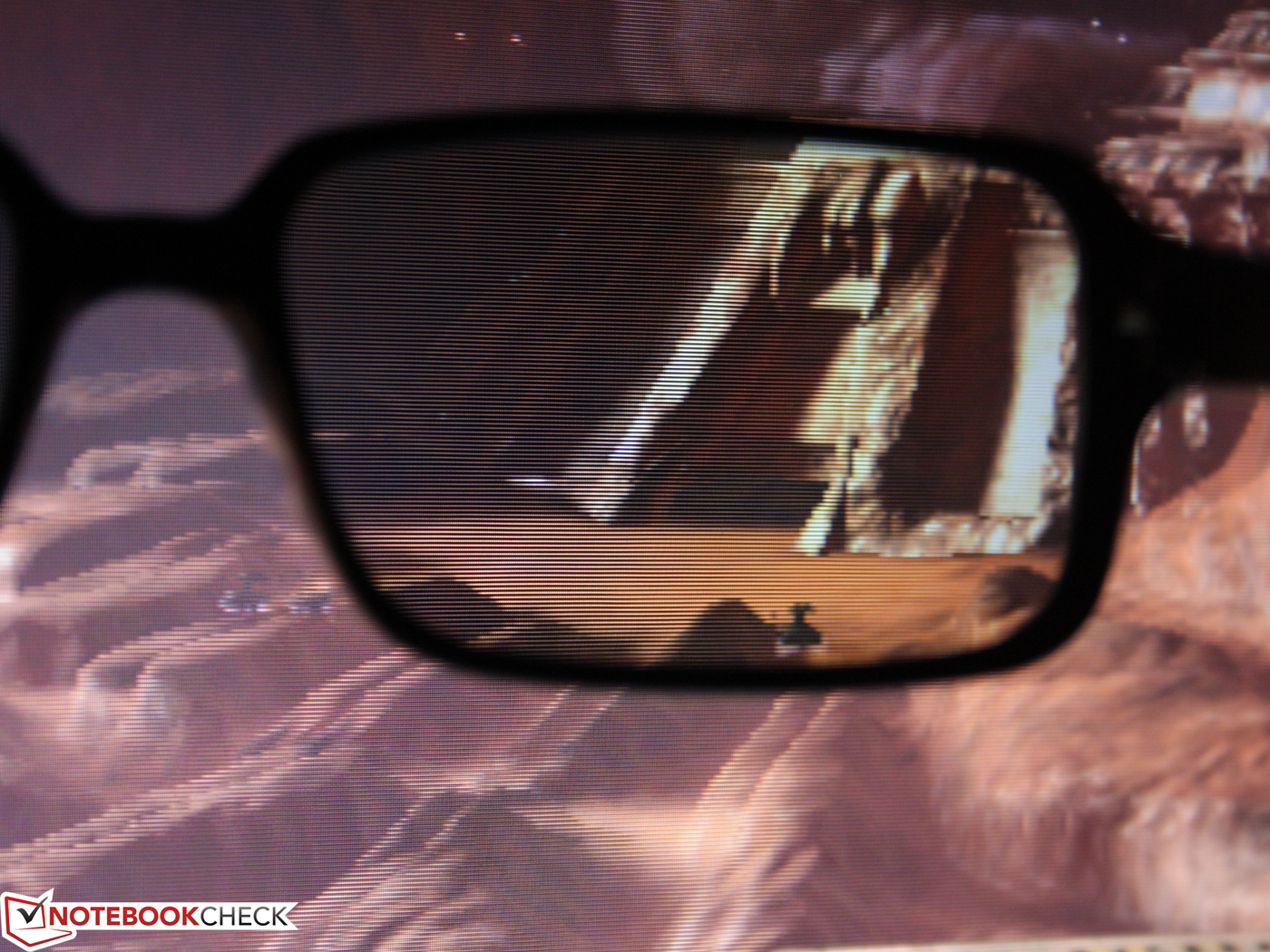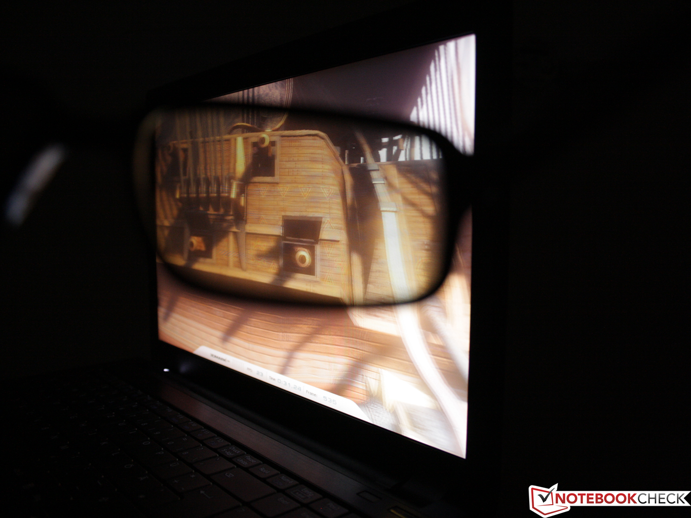Das 3D-Bild haut die Tester allerdings nicht vom Hocker. Die Abhängigkeit vom horizontalen Blickwinkel ist zwar klein, vertikal müssen wir aber recht starr in Position bleiben. Das kontrastreiche und mit breiten horizontalen Blickwinkeln gerüstete FHD-Panel ist zwar mit und ohne 3D eine sehr gute Basis. Ein so gutes (keine Verdunkelung) und variables Bild (Kopfposition) wie beim Vaio VPC-F21Z1E/BI 3D-Notebook (sehr gutes Panel) stellt sich jedoch nicht ein.