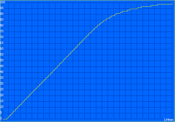 Die eher bescheidende Laufzeit, die geringe TFT-Helligkeit sowie das Glare-Type Panel laden nicht zum Mobilbetrieb ein. Der realitätsnahen Akkulaufzeit kommt der Test beim WLAN-Surfen sehr nahe. Nach drei Stunden ist der Akku leer. Das LED-Panel lief während des Tests auf 100 cd/m². Ob eine Runde StarCraft 2 drin ist, das könnte unser Last-Test mit dem Battery Eater abbilden. Nach einer Stunde gehen dort schon die Lichter aus. Für die Laufzeit sorgt ein 57 Wh Lithium-Ionen Akku (5.200 mAh). Selbiger benötigt akzeptable 2:13 Stunden zum kompletten Aufladen.
