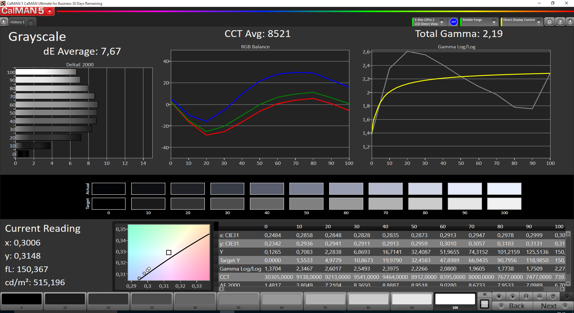 ΔE Greyscale Calman: 7.67 | ∀{0.09-98 Ø5}