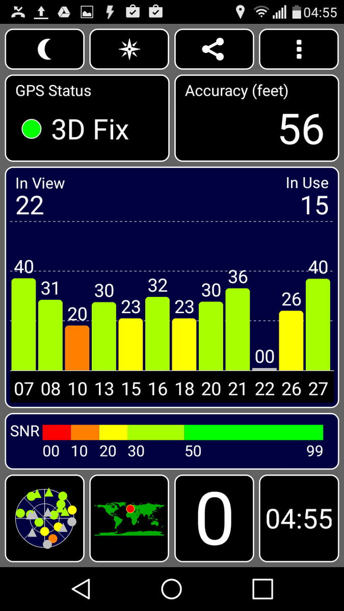 Zur Standortbestimmung wird in unserem Testgerät ein GPS-Modul eingesetzt. Eine Verbindung im Gebäude (viertes und letztes Stockwerk) dauert nur einige Sekunden. Die Qualität ist allerdings eher mittelmäßig. Im Outdoor-Einsatz gelingt die Ortung deutlich schneller und genauer.