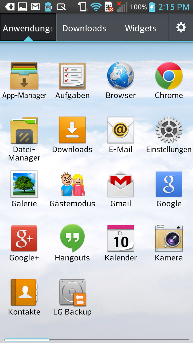 Bei der Softwareausstattung ist LG behutsam vorgegangen und hat statt Bloatware zahlreiche praktische Anwendungen vorinstalliert. So stehen ein Datei- und ein App-Manager ebenso zur Auswahl wie ein Aufgabenplaner und das Sicherungstool LG Backup. Des Weiteren sind auch die Office-Suite Polaris Office 4, diverse Google Dienste und ein E-Mail-Client mit von der Partie.