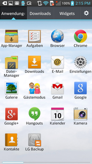Auf dem D605 Optimus L9 II läuft Android in der bereits nicht mehr ganz aktuellen Version 4.1.2 Jelly Bean - inzwischen ist das OS bereits bei Version 4.4 (KitKat) angekommen. Ob es ein Firmware-Update geben wird, steht derzeit nicht fest. Die Betriebssystem-Oberfläche hat LG um einen eigenen Launcher erweitert, der einige optische Finessen wie etwa den Übergangseffekt vom Sperrbildschirm zum Hauptmenü mit sich bringt. Mit dabei ist auch eine QuickMemo-App, die über die Schnelltaste aktiviert wird und es erlaubt, Notizen direkt mit dem Finger auf den Bildschirm zu schreiben und abzuspeichern.