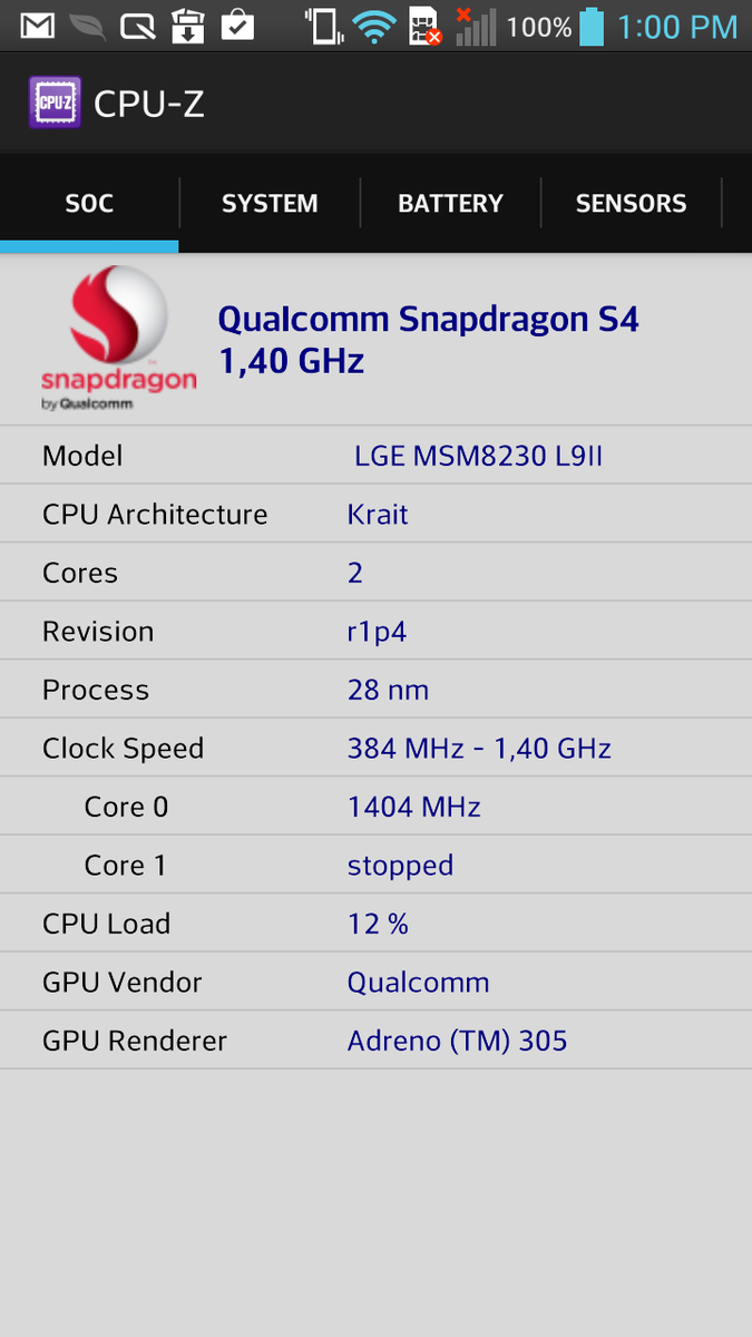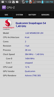 LG stellt sein Mittelklasse-Modell auf eine solide Leistungsbasis, die sich aus dem Qualcomm-SoC Snapdragon S4 MSM8230, dem integrierten Grafikchip Qualcomm Adreno 305 sowie 1 GB Hauptspeicher zusammensetzt. Wie die Benchmarks zeigen, sorgt das Hardware-Gespann für einen flüssigen Betrieb unter Android.