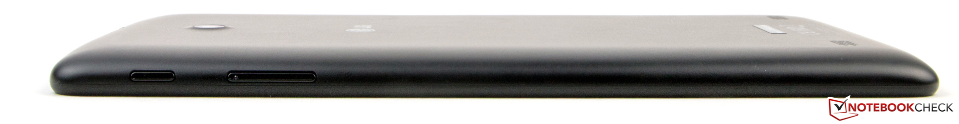 Der Akku des Tablets ist fest verbaut und lässt sich nicht vom Nutzer wechseln. Die Abdeckung des MicroSD-Kartenslots schließt bündig ab und lässt sich einfach öffnen beziehungsweise wieder verschließen. Die übrigen Spaltmaße sind recht gleichmäßig, die Kunststoffrückseite lässt sich jedoch recht einfach vom Display wegdrücken.