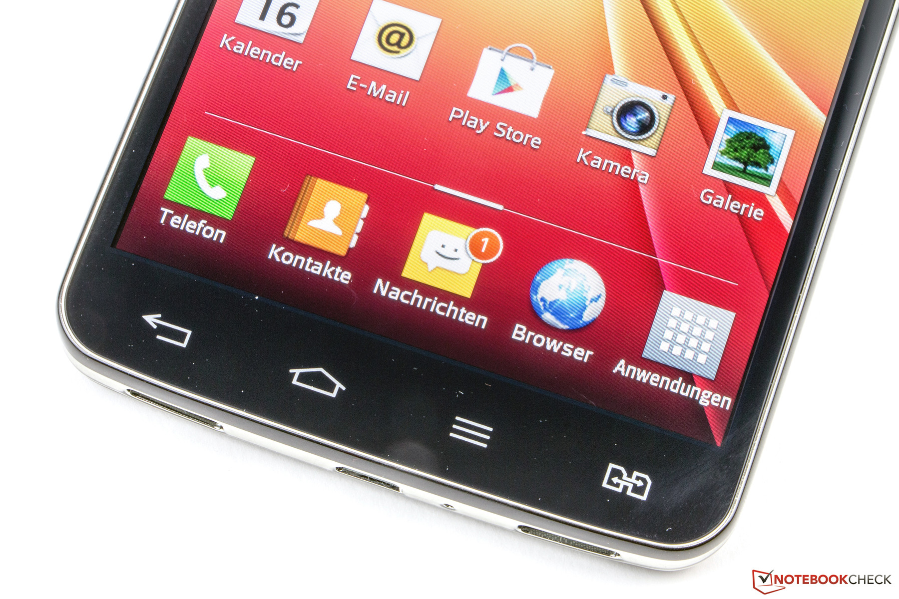 Das Display des LG G Pro Lite Dual ist 5,5 Zoll groß und löst mit 960 x 540 Bildpunkten auf. Das entspricht einem Seitenverhältnis von 16:9 und einer Pixeldichte von gerade mal 200 ppi. Dies ist angesichts der Preisklasse viel zu niedrig und passt auch nicht sonderlich gut zur Panelgröße. Wer genau hinsieht, wird bei Schriften eine Treppchenbildung erkennen können. Hier wäre sicherlich eine Auflösung von mindestens 1.280 x 720 Pixeln angebracht gewesen wie sie auch im Ascend G700 und dem Liquid S1 zum Einsatz kommt. Das China-Phone iOcean X7 verfügt sogar über einen Full-HD-Screen (1.920 x 1.080 Pixel).
