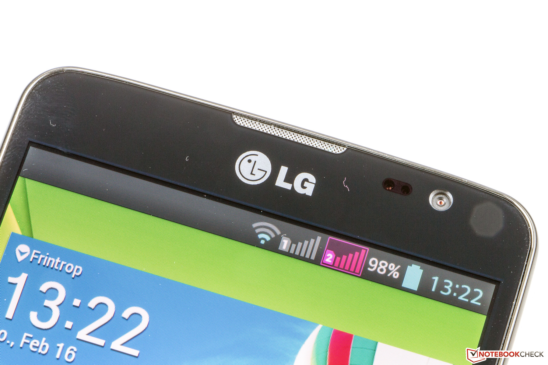Der kapazitive Touchscreen des LG G Pro Lite Dual erkennt bis zu zehn gleichzeitige Berührungen. Die Gleitfähigkeiten der Paneloberfläche sind gut und Eingaben werden auch in den Randbereichen zuverlässig erkannt und präzise umgesetzt.
