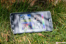 Im Außeneinsatz macht das LG G Pro Lite Dual eine gute Figur. Dies verdankt es vor allem seinem hellen und kontraststarken Display. Bei starker Sonneneinstrahlung stellt sich die spiegelnde Oberfläche jedoch schnell als Spielverderber heraus. Dennoch bleibt der Bildschirminhalt in den meisten Situationen gut ablesbar.