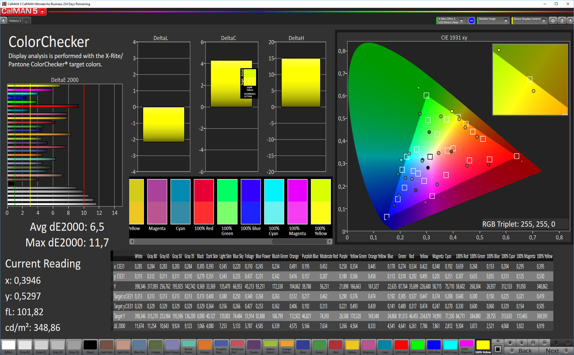ΔE ColorChecker Calman: 6.5 | ∀{0.5-29.43 Ø4.78}