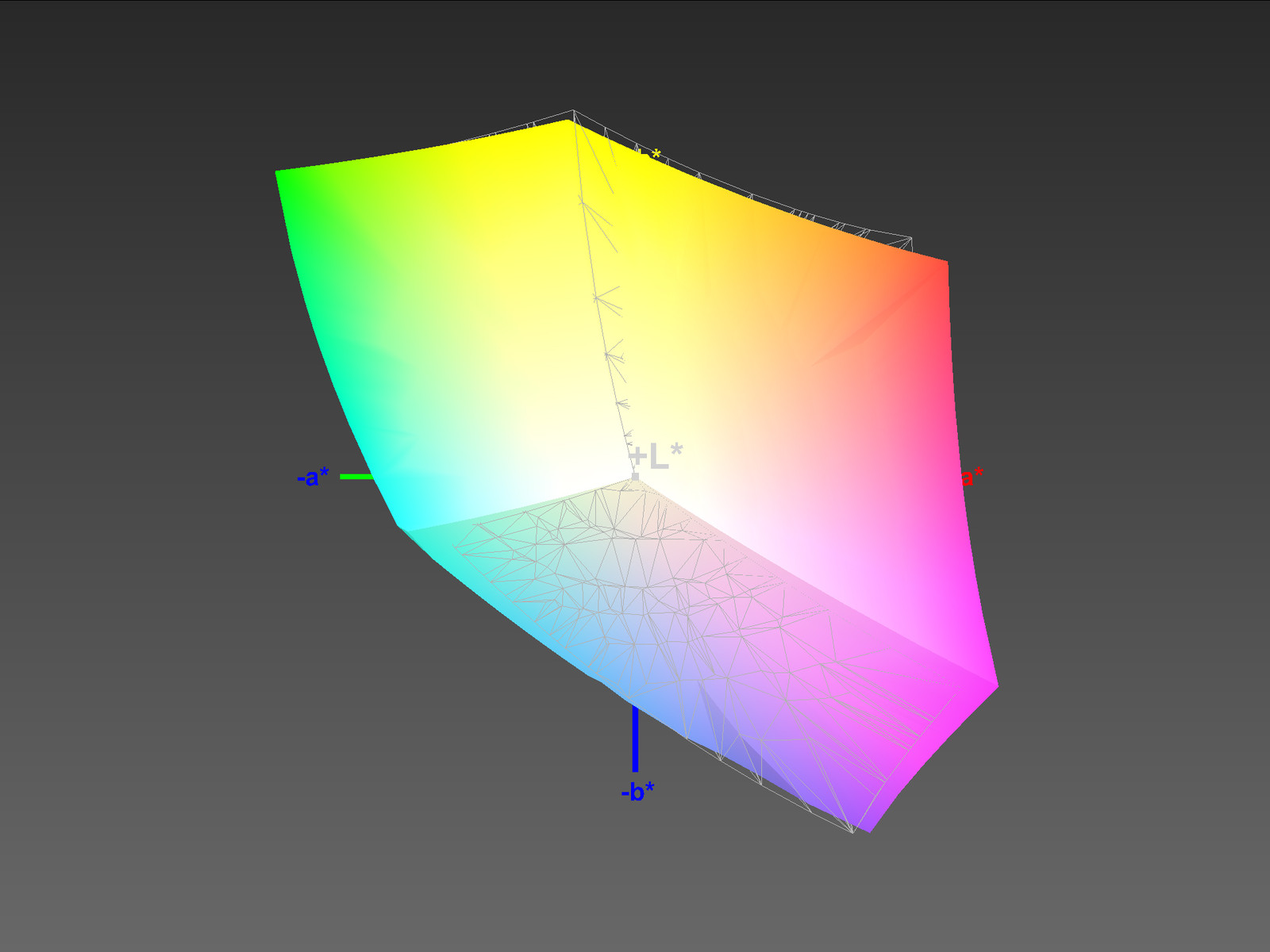 Die Farbraumabdeckung als solche ist sehr gut. Der sRGB-Farbraum wird nahezu vollständig abgedeckt.