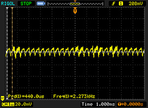 Das Display flackert mit 2273 Hz (im schlimmsten Fall, eventuell durch Pulsweitenmodulation PWM) bei einer eingestellten Helligkeit von 34 % und darunter. Darüber sollte es zu keinem Flackern kommen. Die Frequenz von 2273 Hz ist sehr hoch und sollte daher auch bei empfindlichen Personen zu keinen Problemen führen. Im Vergleich: 53 % aller getesteten Geräte nutzten kein PWM um die Helligkeit zu reduzieren. Wenn PWM eingesetzt wurde, dann bei einer Frequenz von durchschnittlich 8125 (Minimum 5, Maximum 343500) Hz. | |||