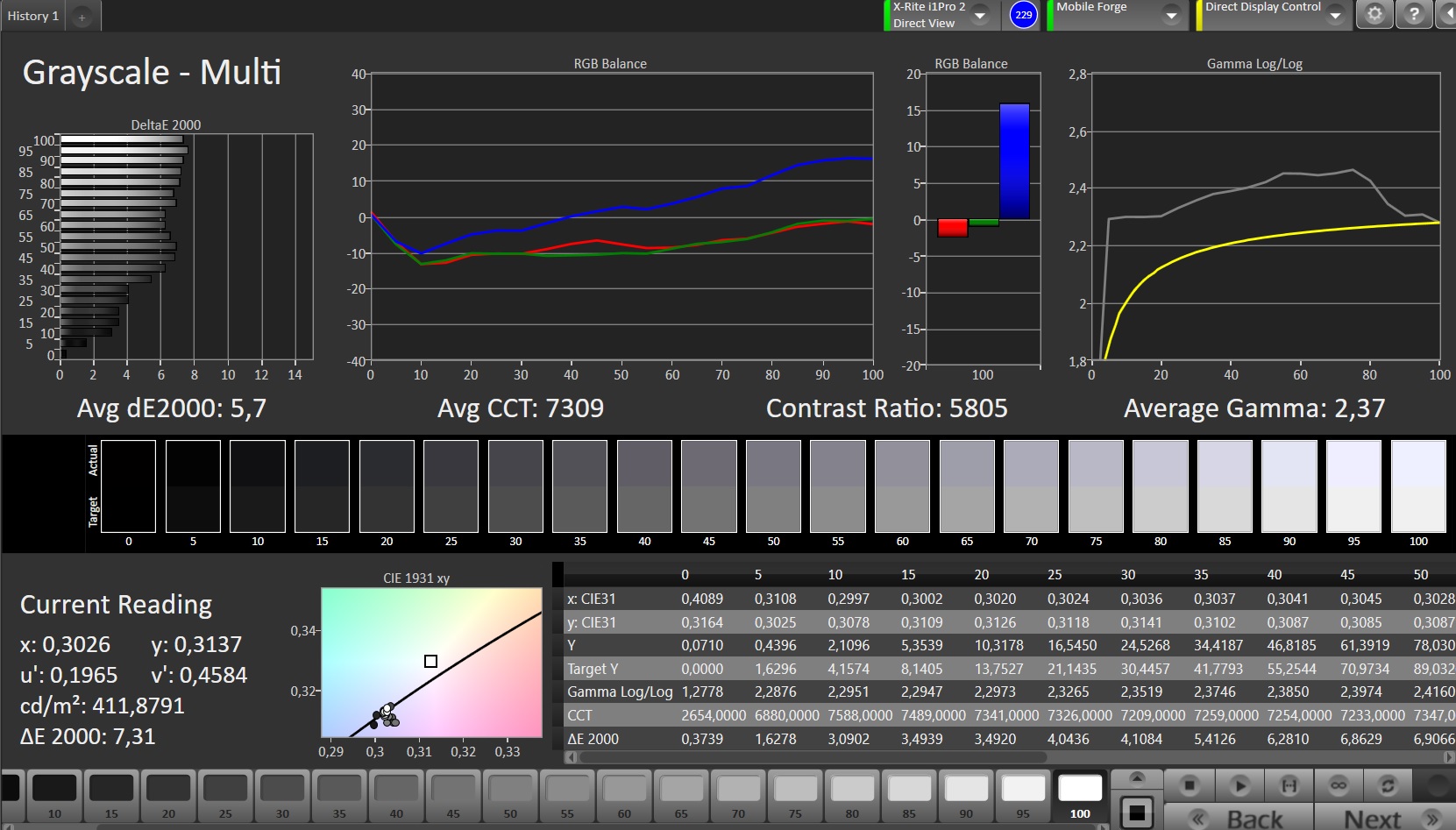 ΔE Greyscale Calman: 5.7 | ∀{0.09-98 Ø5}