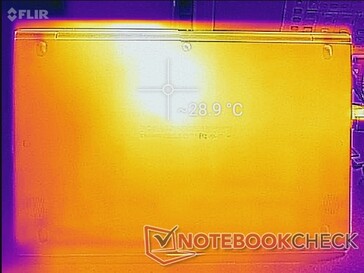 (+) Die Handballen und der Touchpad-Bereich sind mit gemessenen 29.2 °C kühler als die typische Hauttemperatur und fühlen sich dadurch kühl an.