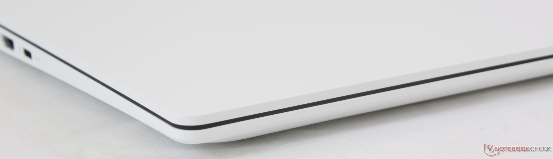 Die Anschlüsse und Anschlusspositionierung sind ident zum Gram 13. Der größte Nachteil ist weiterhin der fehlende Thunderbolt-3-Anschluss, was die Anschlussmöglichkeiten des Geräts deutlich einschränkt. Der einzige USB-Typ-C-Anschluss scheint zusätzlich auf Gen-1-Geschwindigkeiten (5 GBit/s) begrenzt zu sein.