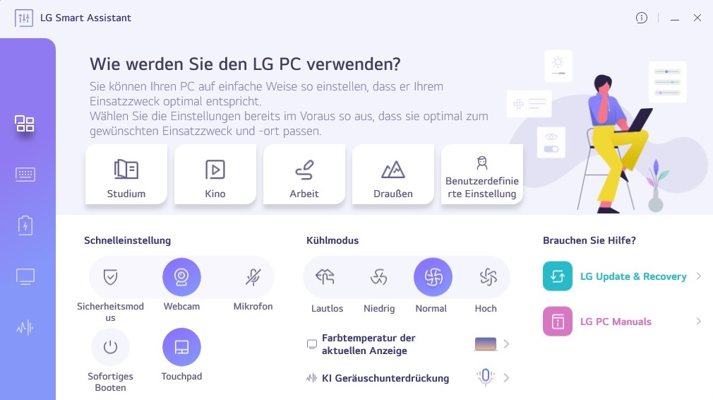 Obwohl die Webcam etwas schärfer (Full HD) und farbtreuer als bei den meisten Office-Notebooks ist, sollte man auch im Falle des Gram 16 keine Glanzleistungen erwarten.