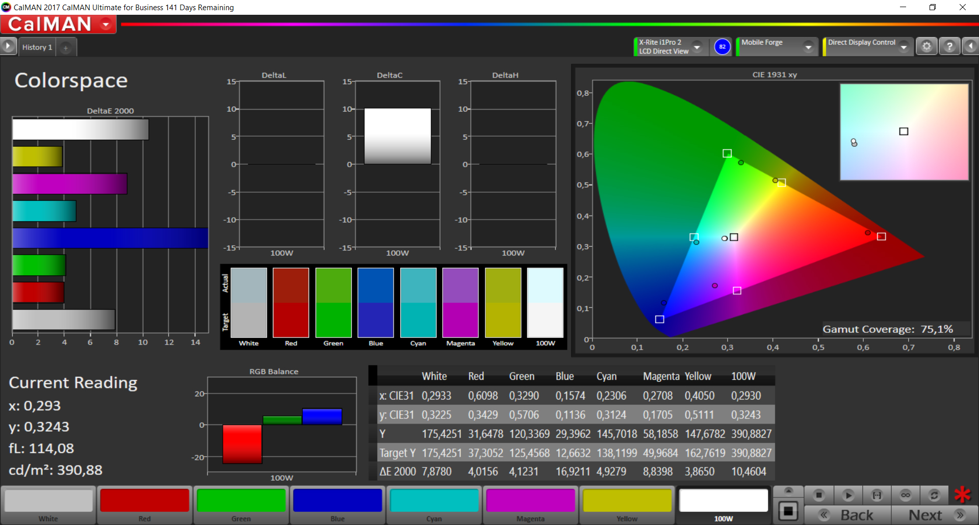 75.1% sRGB (Calman 2D)