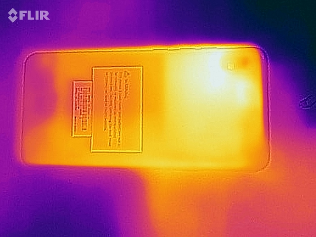 (+) Auf der Unterseite messen wir eine maximalen Wert von 37.9 °C (im Vergleich zum Durchschnitt von 34 °C).