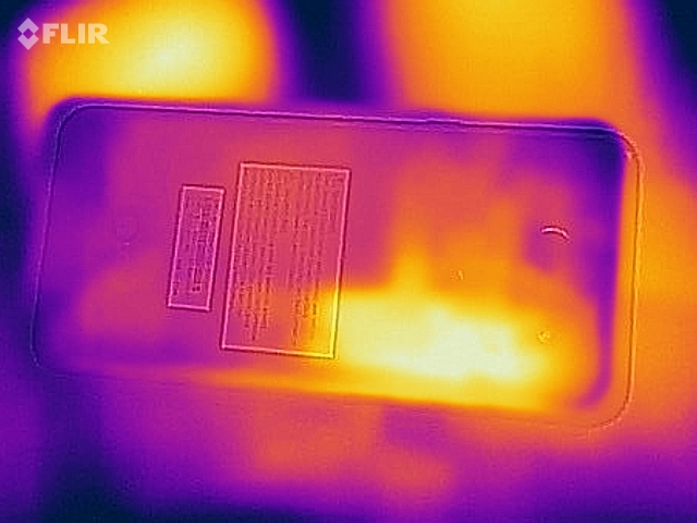 (+) Auf der Unterseite messen wir eine maximalen Wert von 38.5 °C (im Vergleich zum Durchschnitt von 34 °C).