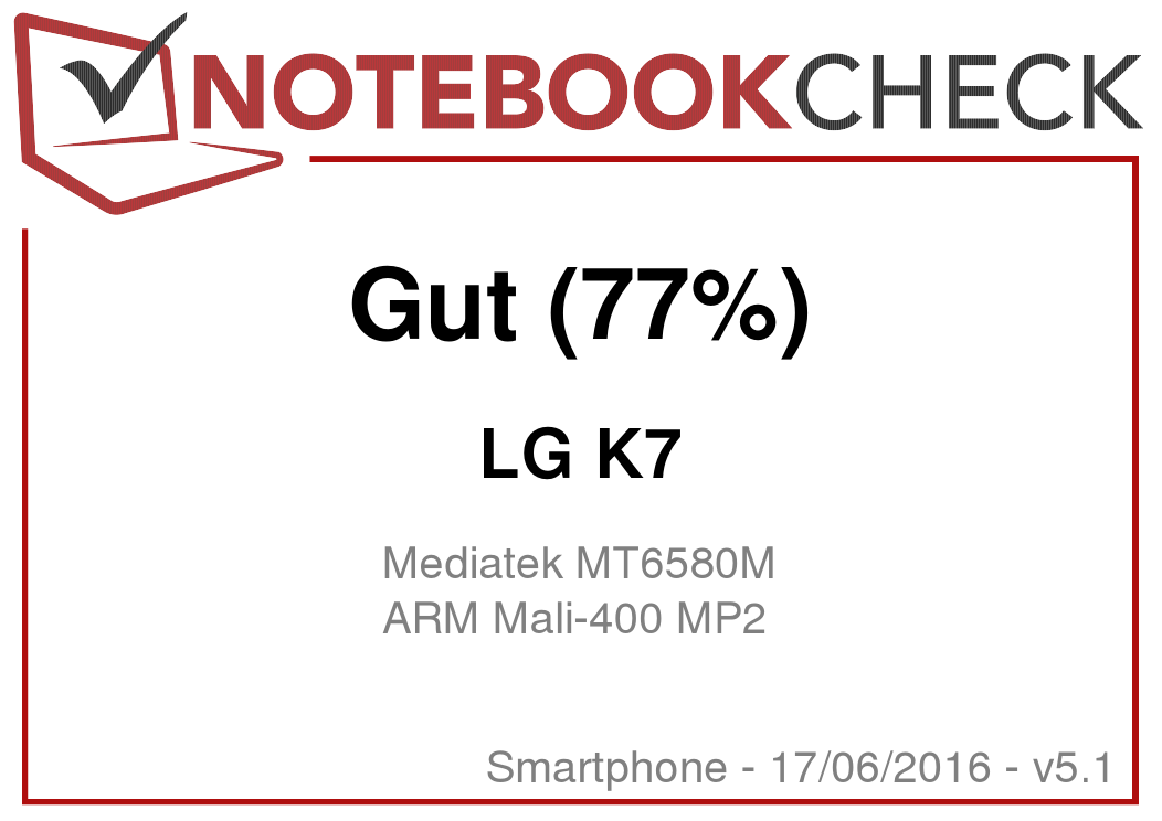 Das LG K7 setzt auf den Quadcore-SoC MediaTek MT6580M, dessen Cortex-A7-Rechenkerne auf jeweils 1,3 GHz getaktet sind. Wollte man ihn einer Smartphone-Klasse zuordnen, würde er bei den Einsteigergeräten landen. Geboten wird eine solide, aber keineswegs herausragende Performance. Dazu passen der mit 1 GB knapp bemessene Hauptspeicher und der nicht mehr ganz taufrische Grafikchip ARM Mali-400 MP2.