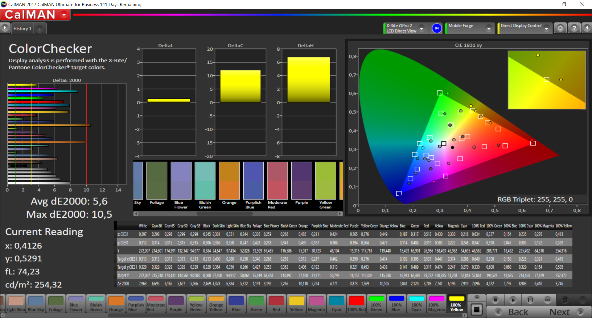 ΔE ColorChecker Calman: 5.6 | ∀{0.5-29.43 Ø4.78}