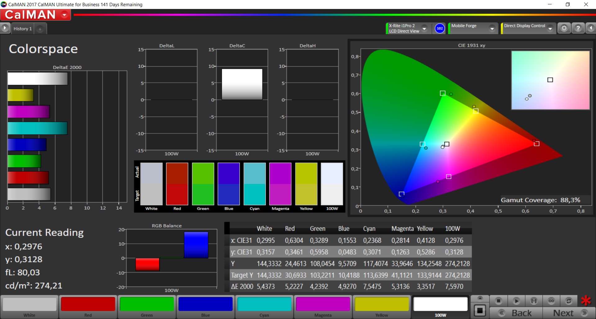 88.3% sRGB (Calman 2D)