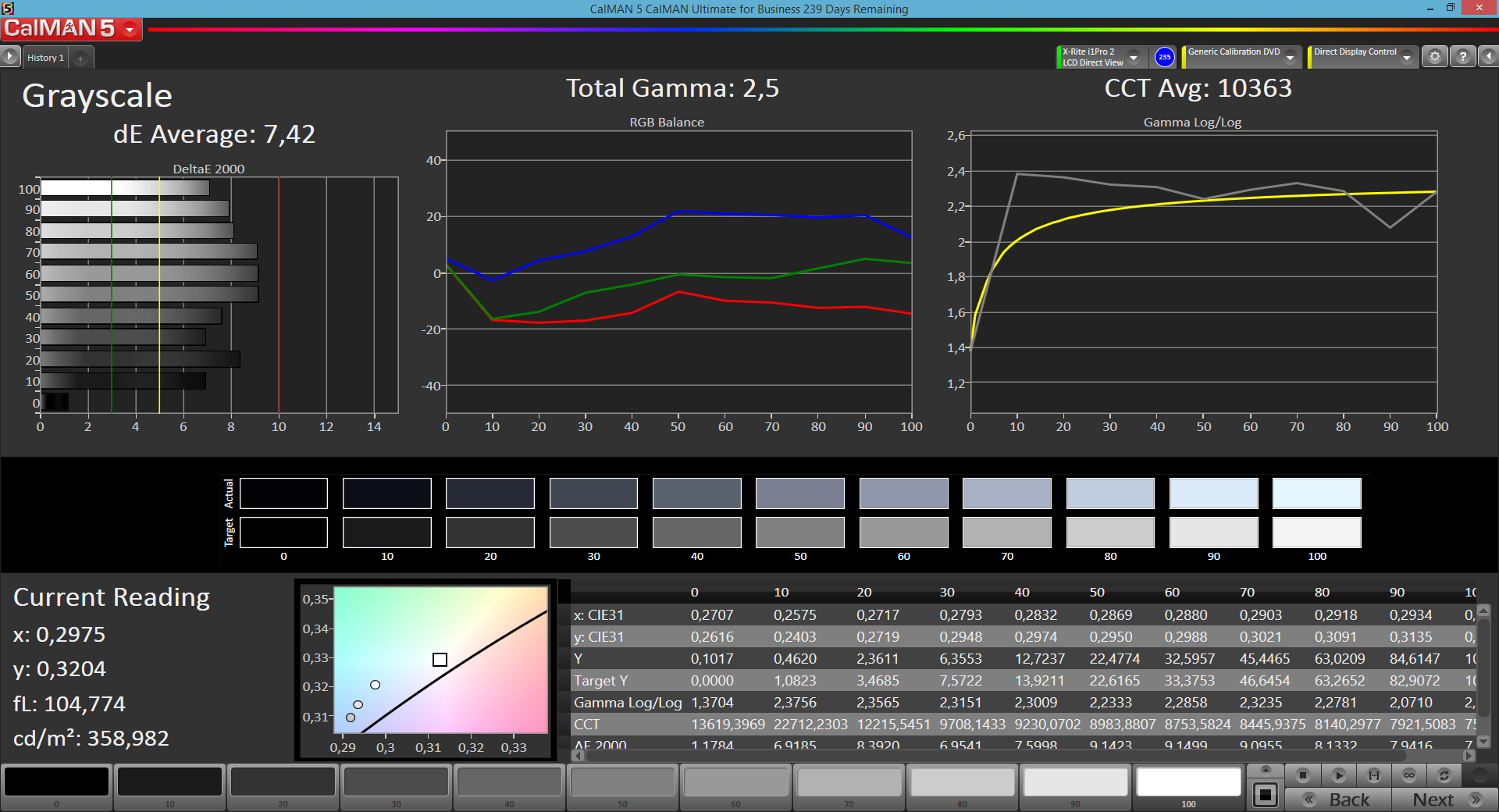 ΔE Greyscale Calman: 7.42 | ∀{0.09-98 Ø5}