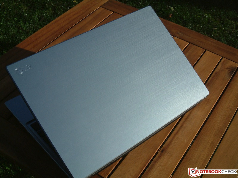 LG wirbt mit dünnem und schicken Gehäuse und will dabei die Bedürfnisse der reisenden Zielgruppe erkannt haben. Tatsächlich ist das P530 ungewohnt leicht für ein Notebook mit 15,6 Zoll Display, denn mit nur 2,2 Kilogramm plus rund 300 weiteren Gramm für das Netzteil macht das LG auch unterwegs eine gute Figur. Der Deckel aus gebürstetem Aluminium mit der fingerabdruckabweisenden Oberfläche gefällt und fasst sich subjektiv angenehm an. Das nur rund sechs Millimeter dicke Display lässt uns staunen, da der Displayrahmen im Inneren ungewohnt schmal ist. Auch im Innenraum geht es bis auf den Bildschirm selbst matt zu. In silbernem Kunststoff gehalten, vermittelt die Oberseite der Baseunit nicht die selbe Wertigkeit wie der Deckel, wirkt aber nicht billig. Der Displayrahmen in Schwarz ist ohnehin kaum sichtbar, nicht einmal ein Logo oder die Modellbezeichnung ziert ihn. Die Tastatur fügt sich in Schwarz harmonisch in das schlichte Gesamtkonzept ein, genau wie das kaum abgehobene Touchpad. Auf bunte Lichtspiele muss das P530 ebenso verzichten, wie auf Zierteile aller Art. Mit einer maximalen Dicke von rund drei Zentimetern passt das Gerät in viele Aktentaschen. Die Verarbeitung macht einen guten Eindruck und weist überwiegend regelmäßige Spaltmaße auf.
