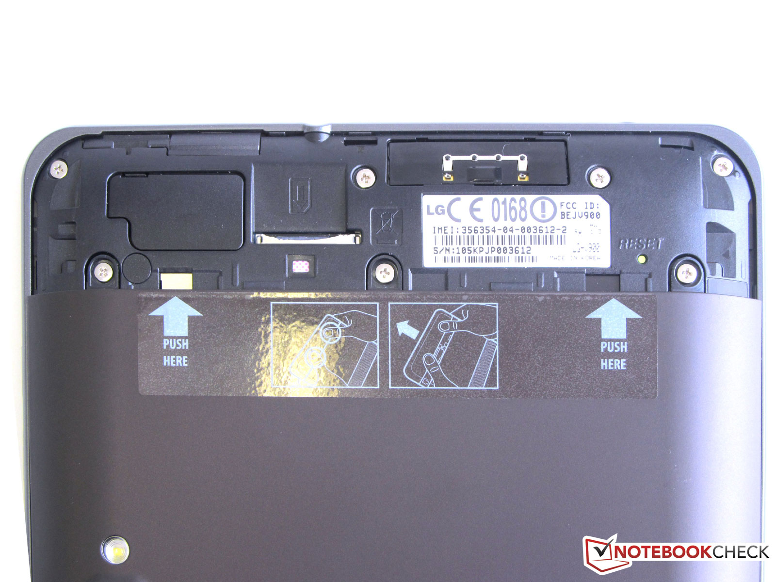 Hinsichtlich Schnittstellen und äußeren Bedienelementen hat sich LG auf das Wesentlichste konzentriert und sich für das V900 nicht besonders viel einfallen lassen. Auf der Unterseite sind ein USB- sowie ein HDMI-Anschluss vorzufinden. Außerdem sieht man mehrere Kontakte, die sich für die Verwendung einer Dockingstation oder einer LG Tischladestation SDT-500 nutzen lassen. Welche Erweiterungen die Dockingstation bringen wird, konnten wir zum Zeitpunkt des Tests nicht in Erfahrung bringen, da die Information von LG noch nicht verfügbar war.