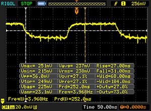 | 44 ms ... steigend ↗ und fallend ↘ kombiniert | ↗ 17 ms steigend | |