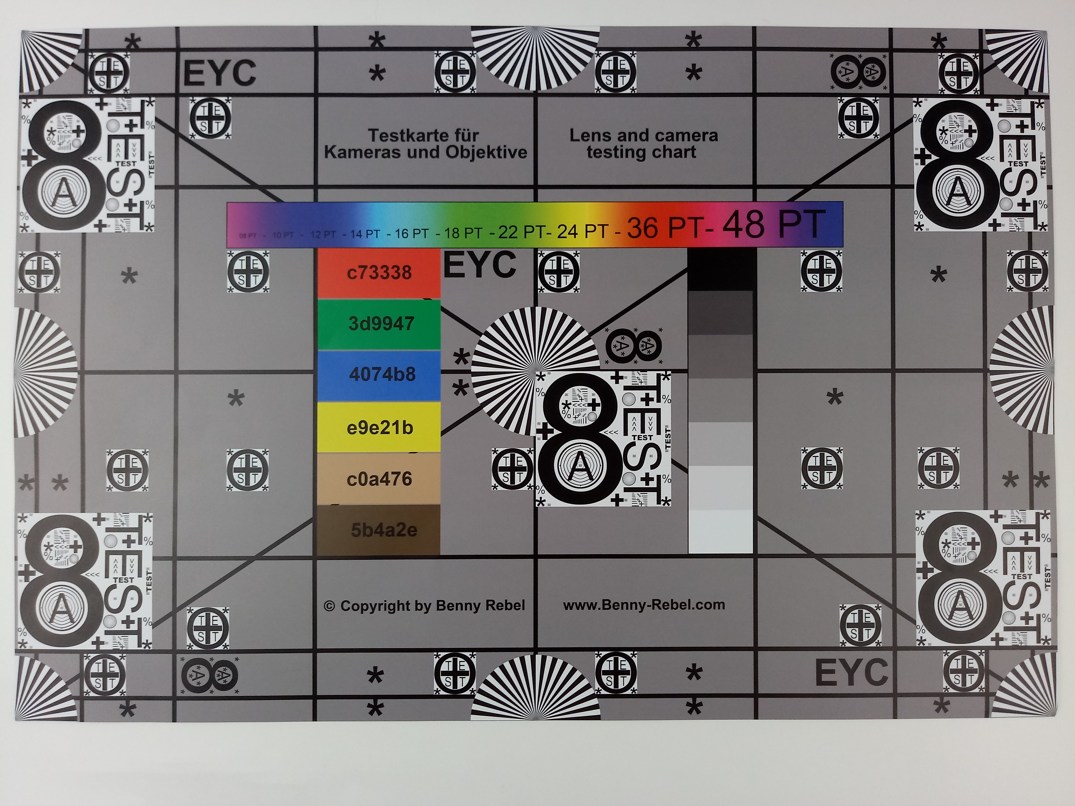Szene 1Szene 2Szene 3Im nächsten Schritt geht es für die Hauptkamera des LG X power2 zurück ins Testlabor, wo wir unter festgelegten Lichtbedingungen die Darstellung der Farben noch einmal untersuchen. Hier ist die Bildschärfe in Teilen des Bildes recht ordentlich, auch die Darstellung von Text vor farbigem Hintergrund liefert ein ordentliches Ergebnis. Besonders im linken Bildbereich nimmt die Schärfe aber sichtbar ab und Kanten wirken über das gesamte Bild gesehen ausgefranst. Die Farbdarstellung weicht bei einigen Farbtönen stärker vom Referenzwert ab, bei anderen ist sie relativ genau. Insgesamt ein durchschnittliches Ergebnis bei der Farbdarstellung.