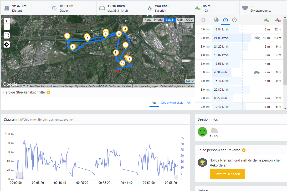 Das GPS-Modul des Leagoo Shark 1 zeigt kleine Ungenauigkeiten im Routenverlauf im Vergleich zu dem Profi-Navi Garmin Edge 500. Knapp 350 Meter liegen zwischen dem Shark 1 und dem Garmin Edge 500 am Ende der 12,6 Kilometer langen Teststrecke. Alles in allem keine schlechten Werte, aber anhand der vielen unterstützen Hauptsatellitensysteme war die Positionsbestimmung unerwartet ungenau.