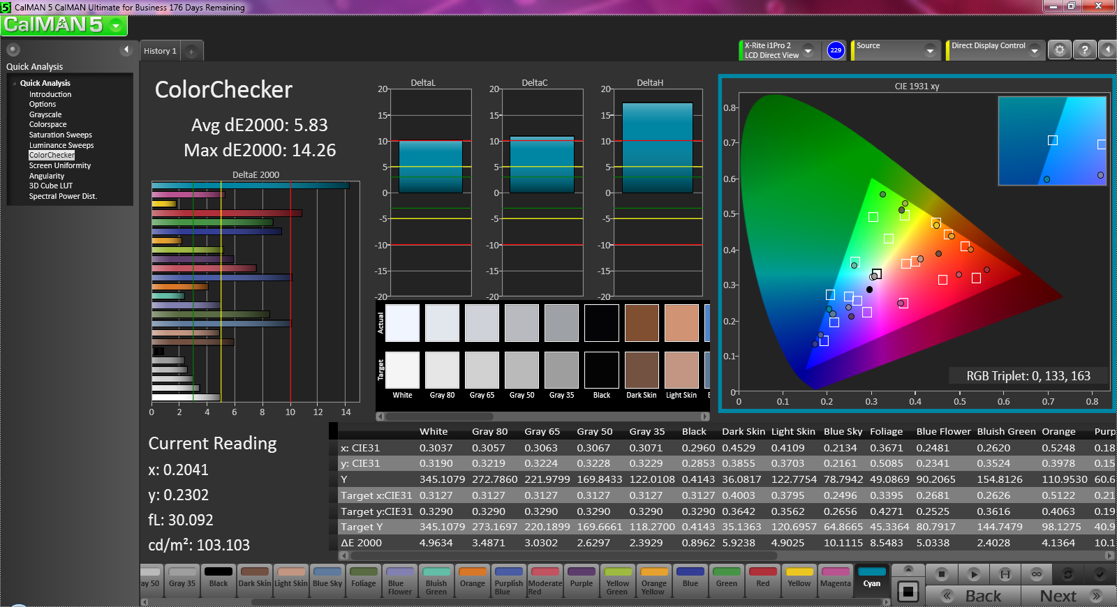 ΔE ColorChecker Calman: 5.83 | ∀{0.5-29.43 Ø4.79}