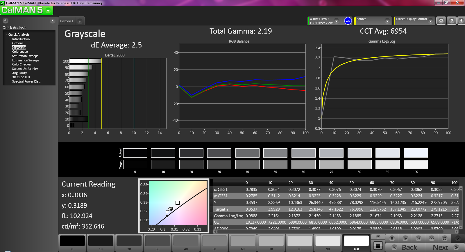 ΔE Greyscale Calman: 2.5 | ∀{0.09-98 Ø5}