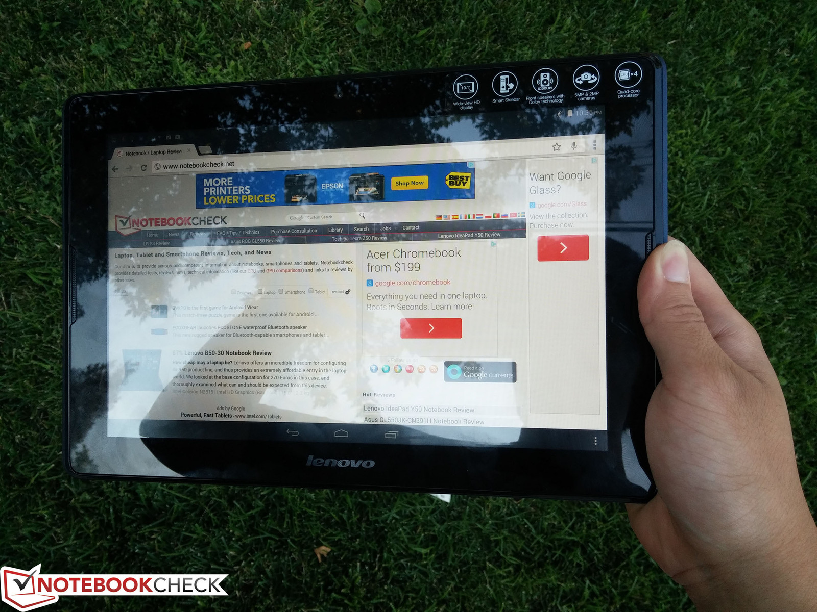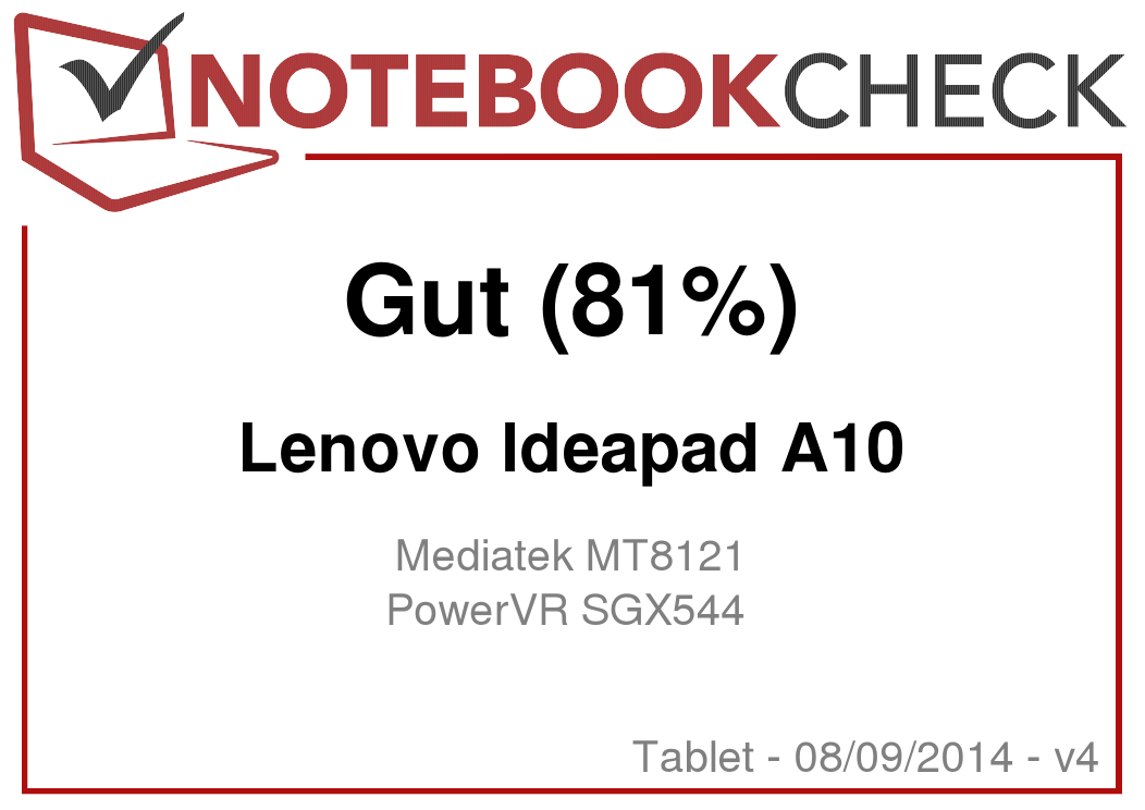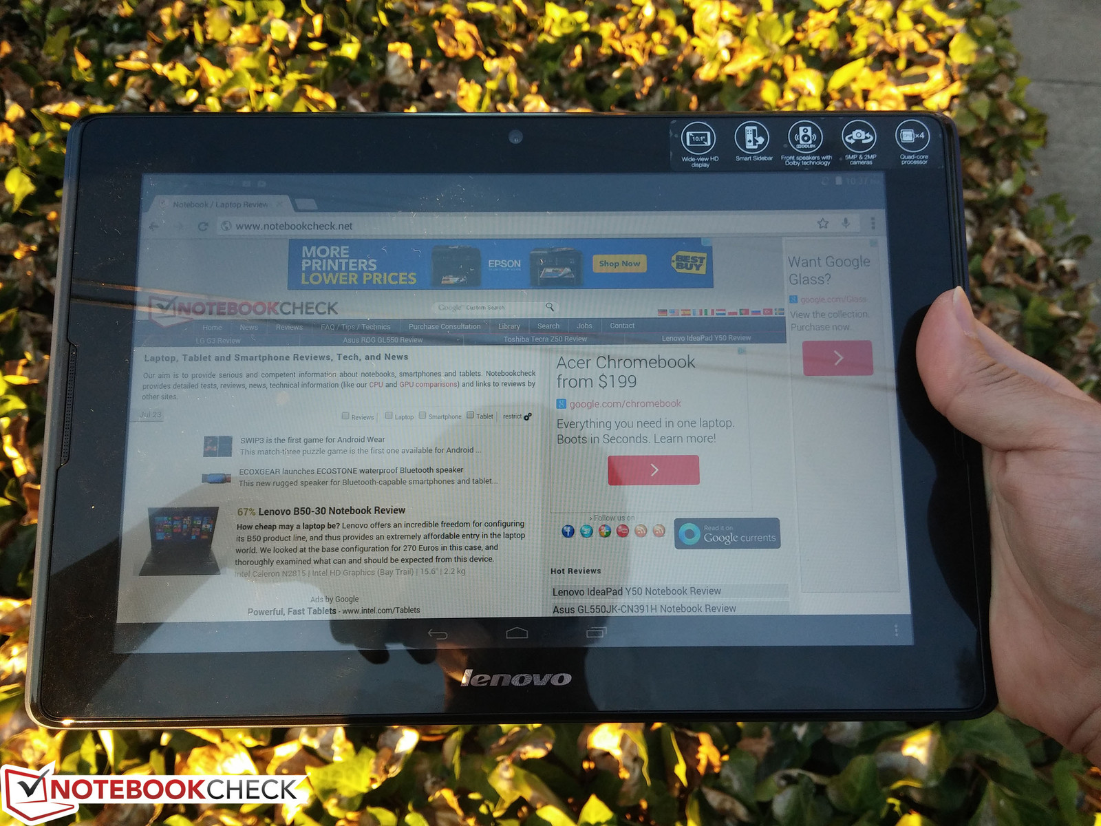 Für ein günstiges 10,1-Zoll-Tablet macht das Lenovo A10 einige Sachen richtig, bei denen viele andere günstige Geräte normalerweise Probleme haben. Es verfügt über ein IPS-Panel, einen ausreichend schnellen SoC, ein großes und helles Display, Kameras vorne und hinten sowie ein dünnes und attraktives Gehäuse. Diese Eigenschaften führen außerdem zu einer deutlich besseren Outdoor-Tauglichkeit gegenüber Rivalen in dieser Preisregion, was natürlich ein großer Vorteil ist, wenn man sein Tablet auch häufig im Freien verwenden will. Die optionale 3G-/SIM-Unterstützung und das versprochene Update auf Android 4.4 KitKat machen das A10 endgültig zu einer Empfehlung unter den günstigen Tablets für mobile Anwender.