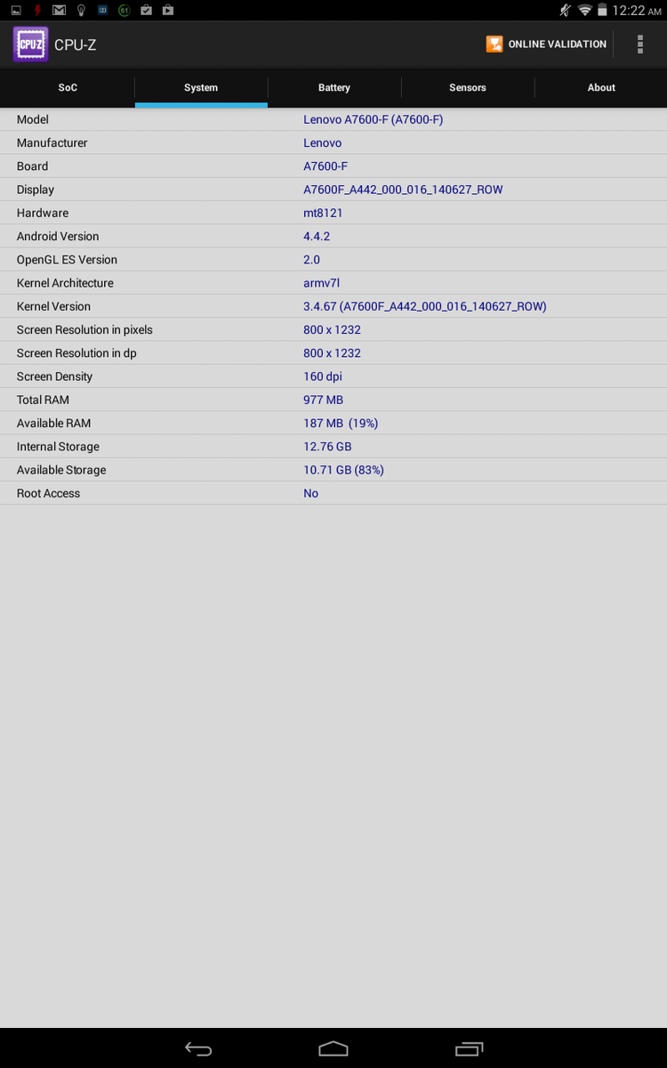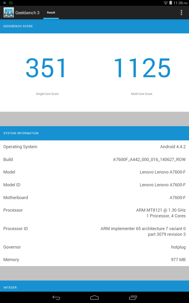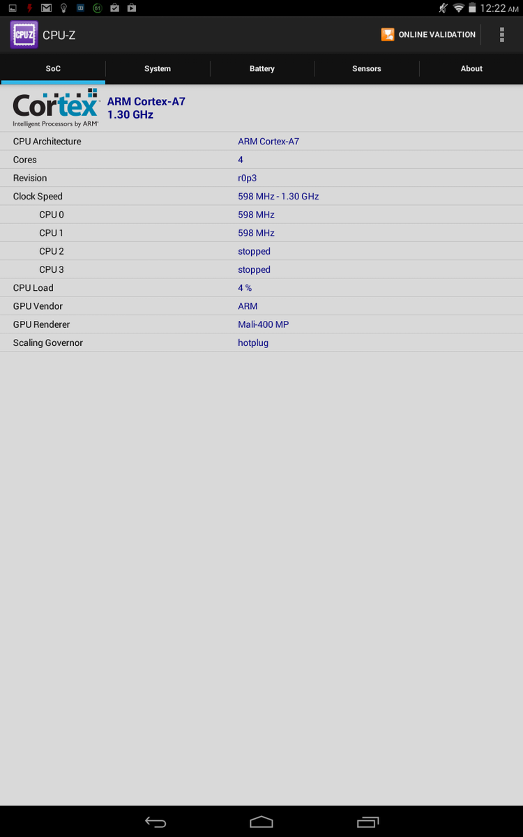 Der 1,3 GHz schnelle MediaTek MT8121 ist ein energiesparender Quad-Core-SoC, der auf dem Cortex-A7-Design von ARM basiert. Dieser Prozessor befindet sich auch in dem kleineren Lenovo A8 und liegt im Hinblick auf die Prozessorleistung etwas über dem Tegra 3. Die Multi-Core-Leistung ist laut Linpack mit dem Galaxy Tab 4 10.1 (Snapdragon 400 MSM8226) und dem Google Nexus 7 2013 (Krait S4 Pro) vergleichbar. Die 3G-Konfiguration des A10 verwendet vermutlich den MediaTek MT8382-SoC, um die Kompatibilität mit dem zusätzlichen Funkmodul zu gewährleisten.