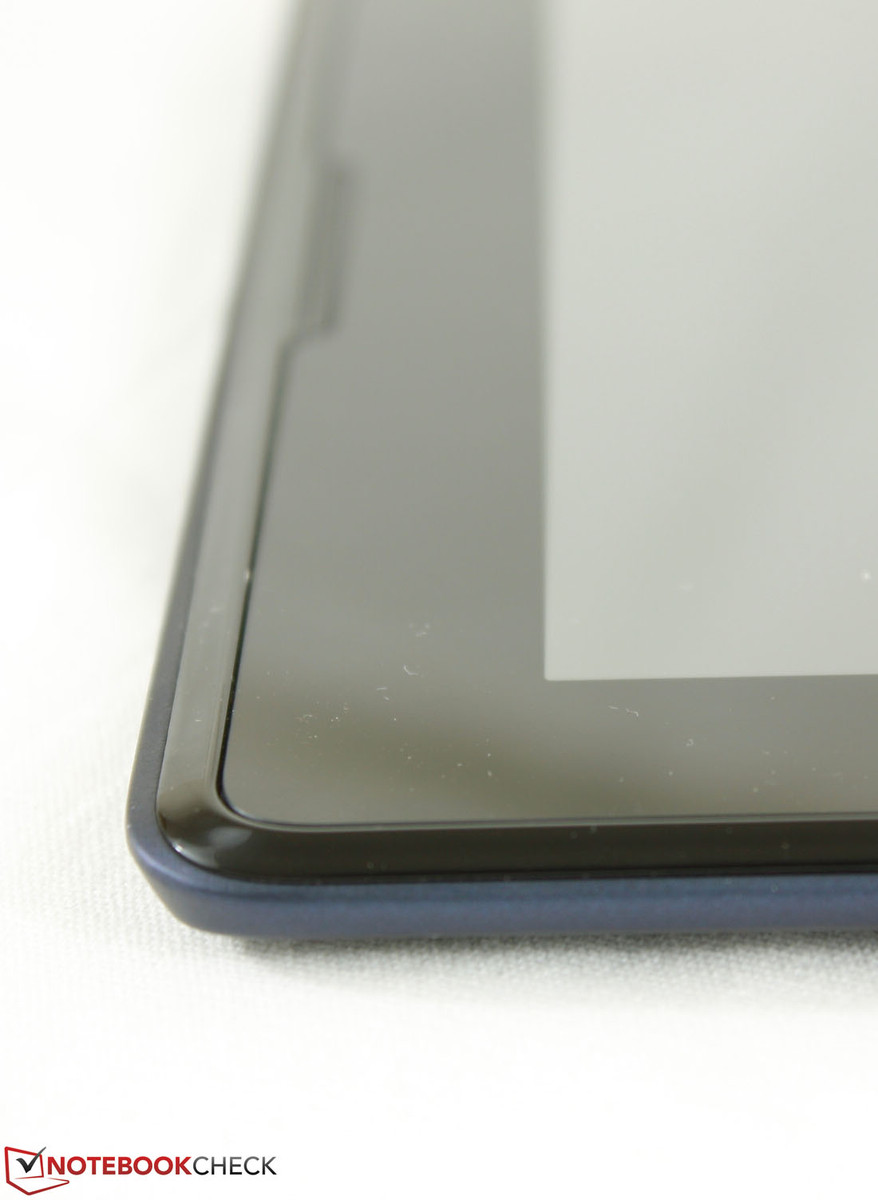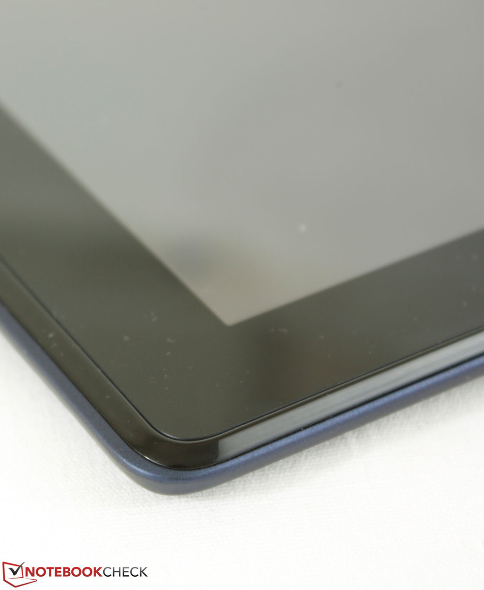 Auch die Verwindungssteifigkeit ist gut, und wir können nur minimale Biegung feststellen. Vor allem im Vergleich zum IdeaTab S2110 ist das A10 für seine Preisklasse sehr stabil. Gegenüber dem kastenförmigen S2110 sind die Ecken und Kanten unseres Testgerätes runder. Die Stabilität liegt vielleicht nicht ganz auf dem Niveau des sehr dicken Kindle Fire der ersten Generation, es ist aber ein fairer Kompromiss zu Gunsten der Dicke und des Gewichts.