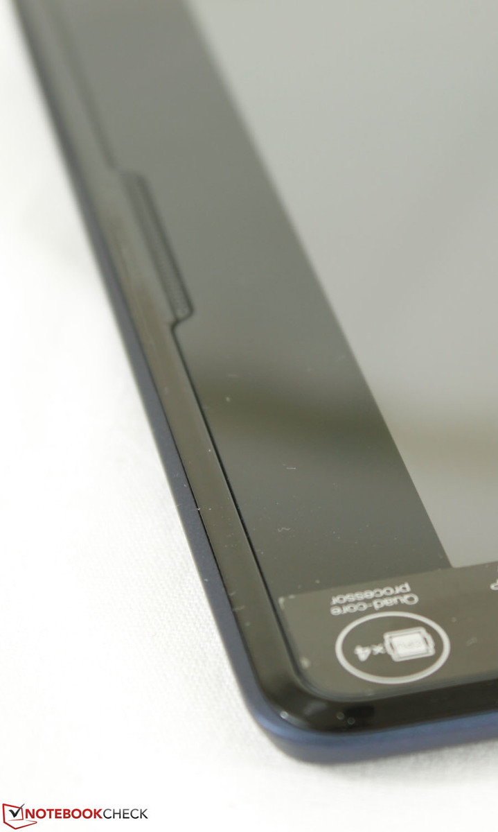 Abgesehen von den Kanten, die die verschiedenen Materialen des Non-Unibody-Gehäuses abtrennen, zeigt unser Testgerät keine Spalte, Öffnungen oder andere Mängel. Allerdings sind auch im Alltag leichte Knarzgeräusche hörbar. Das ist sicherlich der unangenehmste Aspekt des Gehäuses, denn abgesehen davon ist es für diesen Preis sehr ordentlich konstruiert.