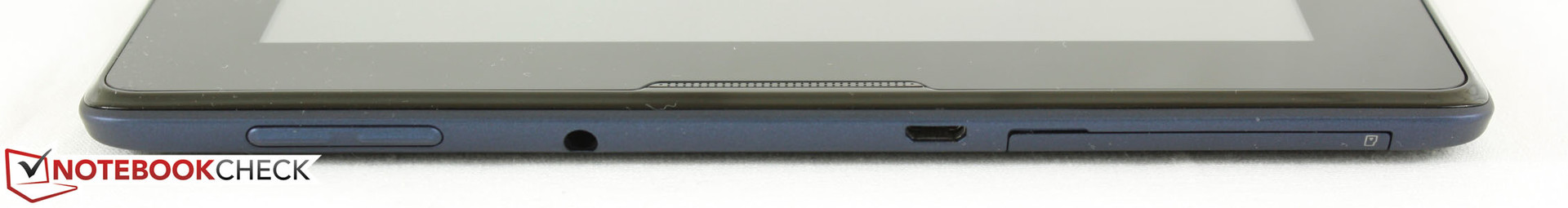 Die Anschlussvielfalt ist begrenzt. Ein Micro-USB-Anschluss ist vorhanden und wird hauptsächlich für Datentransfers und zum Laden benötigt, denn er unterstützt keine Videoausgabe. Diesen Nachteil teilt sich das A10 mit dem Yoga Tablet 10. Viele Rivalen, inklusive Lenovos eigenem S6000, unterstützen diese Funktion. Glücklicherweise gibt es im Gegensatz zu vielen anderen Tablets, z. B. Acres Iconia Serie, keinen proprietären Ladeanschluss. Es gibt aber auch keine Status-LEDs, man muss das Tablet also anschalten, um den Akkustand zu kontrollieren. Der MicroSD-Steckplatz des A10 liegt hinter einer Plastikklappe (zusammen mit dem optionalen SIM-Steckplatz) und unterstützt Karten mit bis zu 32 GB. Ein vollwertiger SD-Kartenleser oder sogar ein vollwertiger USB-Anschluss hätten die Multimediafähigkeiten des Tablets noch weiter verbessert.