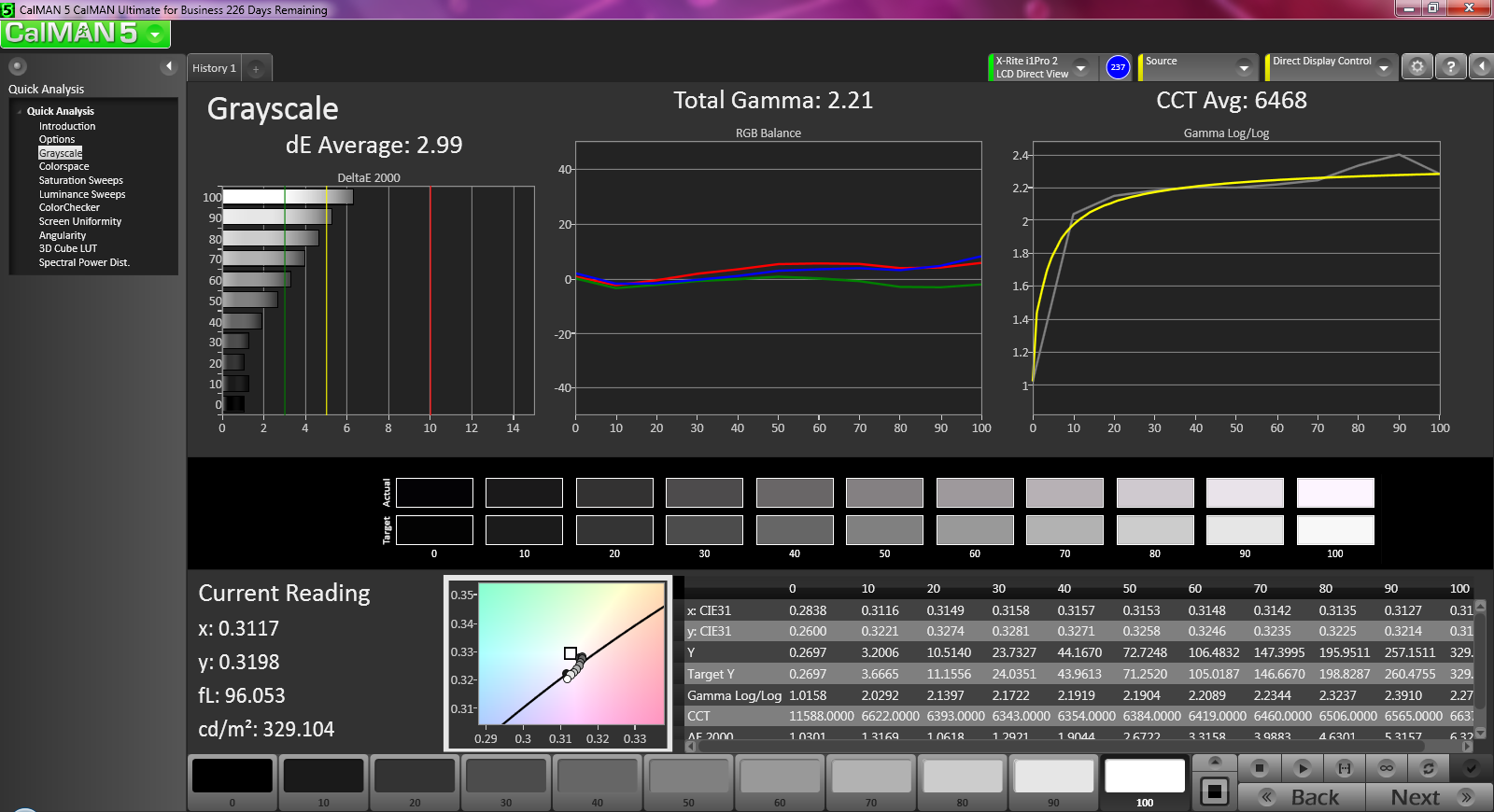 ΔE Greyscale Calman: 2.99 | ∀{0.09-98 Ø5}