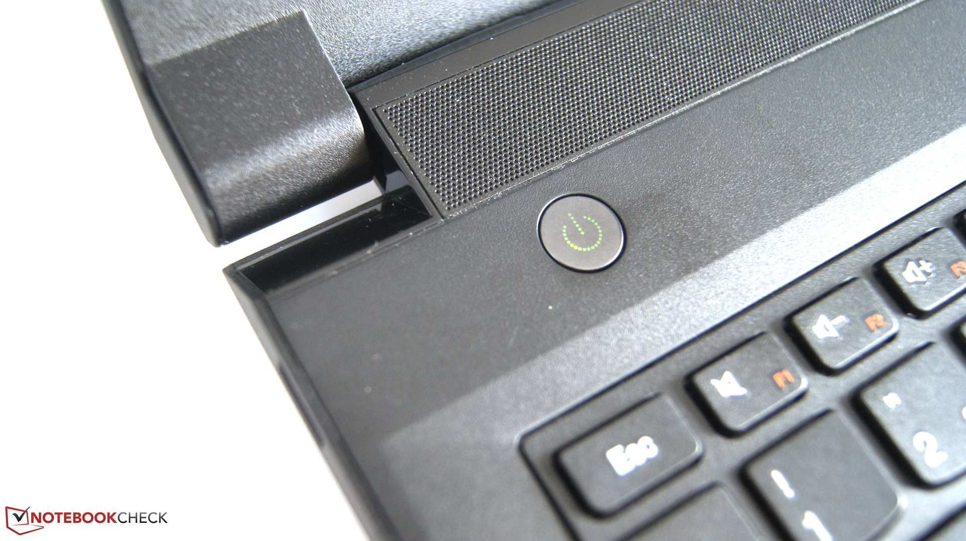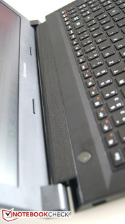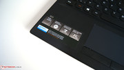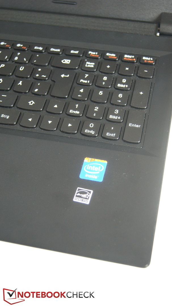 Die von Lenovo bekannte AccuType Tastatur erzeugt bei uns leider etwas gemischte Gefühle. Besonders auf der linken Hälfte ist es auffällig, dass sich die Tastaturmatrix mit all ihren Tasten weit eindrückt, wenn manche Tasten betätigt werden. Bei schnelleren Tippvorgängen fällt auf, dass sich so Tasten verhaken und ein merkwürdiges Knackgeräusch entsteht. Der Rest der Tastatur ist jedoch soweit ok. Positiv zu erwähnen wären die großen Pfeiltasten und das vollständige Numpad. Sondertasten können wir leider keine vorfinden.