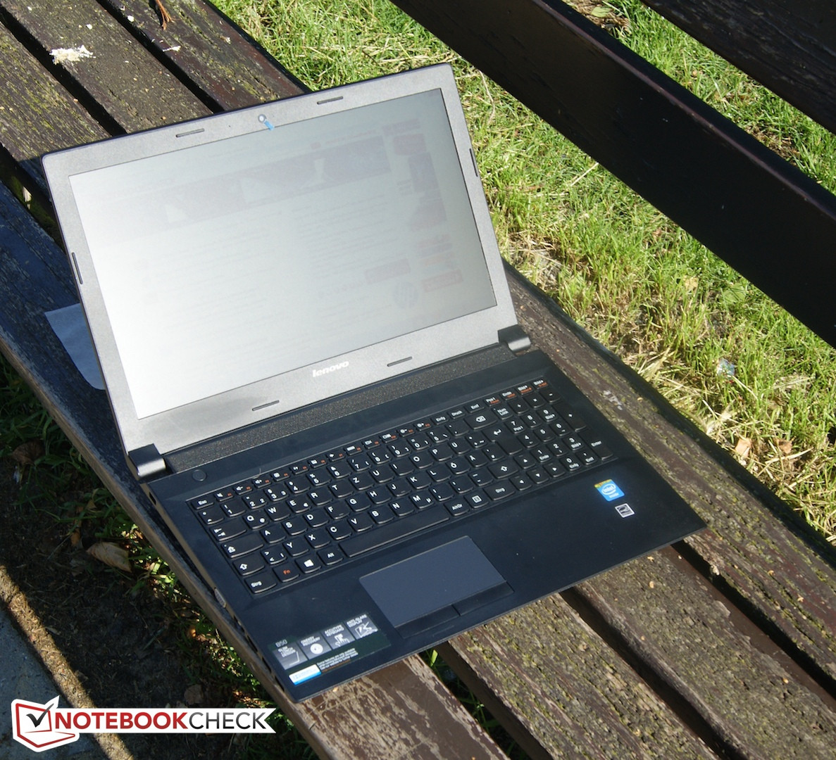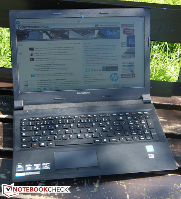 Dank mattem Display ist der Außeneinsatz besonders an schattigen Orten durchaus möglich. Direkte oder indirekte Sonneneinstrahlung sollte jedoch, aufgrund der niedrigen Ausleuchtung, weitgehend gemieden werden. Insgesamt kann das Lenovo gut im Außenbereich genutzt werden.