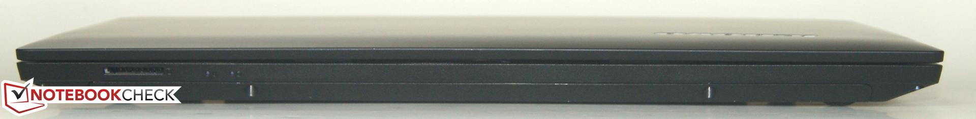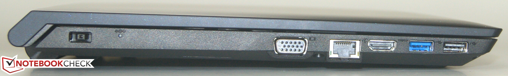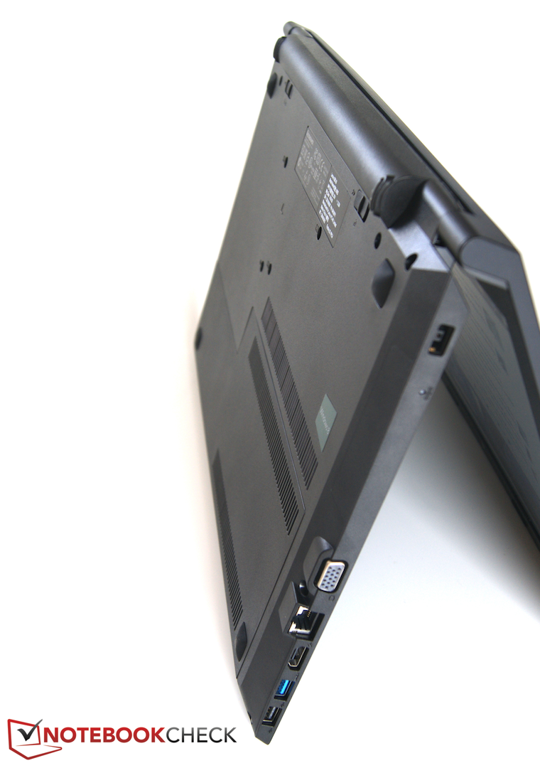 Der Schnittstellenumfang ist, mit nur einem USB 3.0 und zwei USB 2.0 Ports, recht mager angesetzt. Trotzdem besitzt das Lenove B50 einen HDMI-Ausgang, sowie Gigabit-Ethernet. Die Positionierung der Schnittstellen ist im vorderen Bereicht angesiedelt, was einen guten Zugang ermöglicht, jedoch das Arbeitsfeld oftmals durch störende Kabel unangenehm einschränkt.