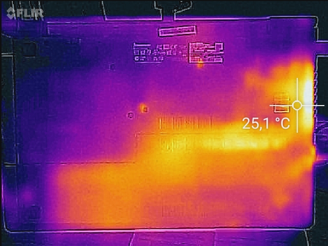 (+) Die Handballen und der Touchpad-Bereich erreichen maximal 33.9 °C und damit die typische Hauttemperatur und fühlen sich daher nicht heiß an.