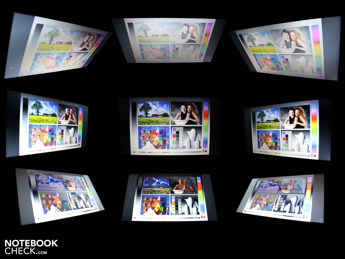 Die vertikalen Blickwinkel der Anzeige sind mit den üblichen 10 Grad sehr klein. Horizontal können wir besser nach links oder rechts abweichen, aber nur bis zirka 45 Grad. Danach dunkelt die Anzeige deutlich ab und Farben verblassen. Die knappen Blickwinkel haben für den Allein-Nutzer des Lenovo B560 kaum Auswirkungen. Erst die Kollegen bekommen Sichtprobleme, wenn sie mit fünf Augenpaaren gleichzeitig in die Anzeige schauen wollen. Bei Text ist das weniger problematisch, doch bei Bildern oder Filmen können die Geisterbilder beträchtlich stören.