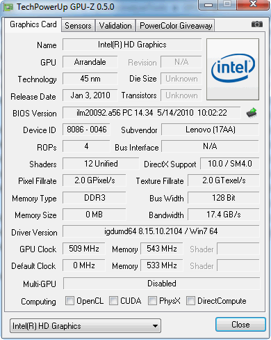 Wie bei fast allen Arrandale CPUs (selbst Celeron P4600) sind Speichercontroller und IGP-Grafikkarte (Intel HD) in das Package des Prozessors integriert. Die Intel HD macht eine Verbindung mit der dedizierten Nvidia 310M möglich. Die Nvidia Optimus Technik erlaubt ein automatisches Umschalten zwischen der Intel HD Graphics und der dedizierten GPU. Die Intel HD bleibt dabei stets aktiv, weil ihr Frame-Buffer konstant für die Bildausgabe genutzt wird. Bei Aktivität schreibt die Geforce 310M ihre Bildinformation direkt in den Frame-Buffer der IGP-Grafik. Daher entstehen keine störenden Wartezeiten oder schwarze Bildschirme beim automatischen Umschalten.