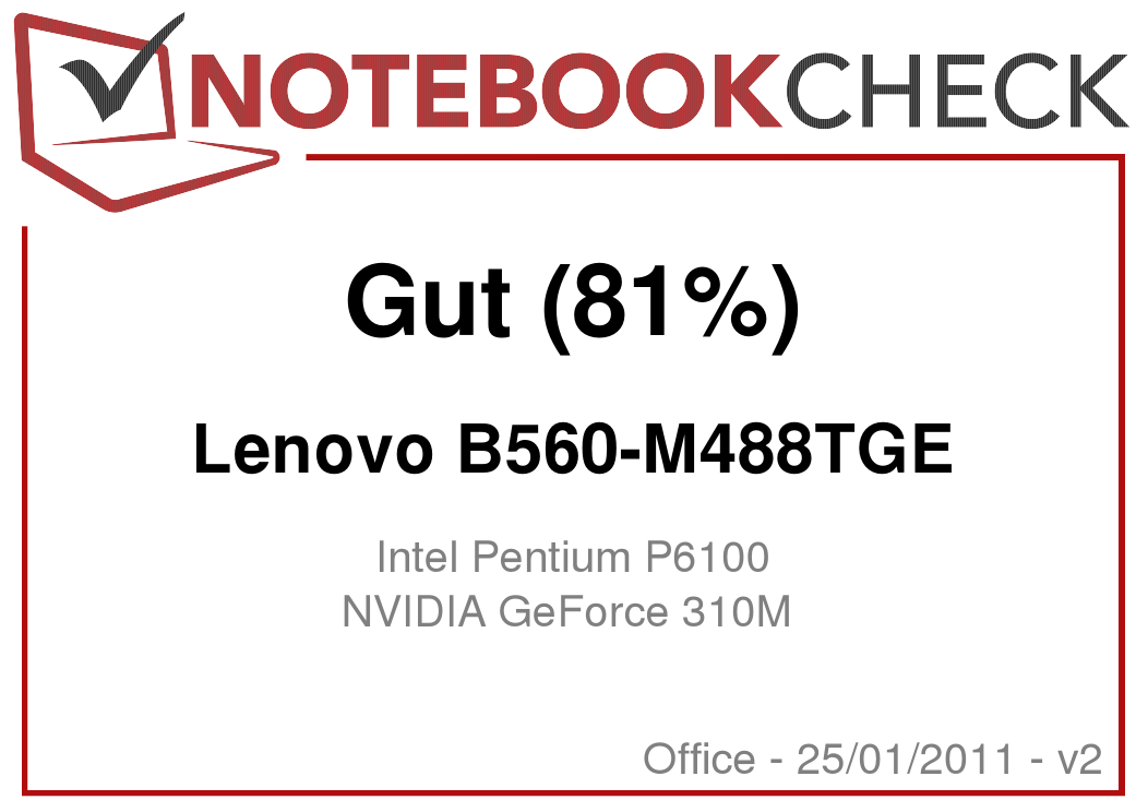 Das Lenovo B560 (M488TGE) bietet für wenig Geld aktuelle Hardware und Office-Qualitäten mit wenigen echten Nachteilen. Wir haben die FreeDOS-Variante für 399 Euro getestet (4 GB RAM). Nvidia-Optimus hilft durch die Abschaltung der Geforce 310M nicht nur beim Energiesparen, sondern auch bei der guten Akkulaufzeit von fast drei Stunden (WLAN Test).