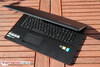 Die Verarbeitung erscheint überwiegend ordentlich. Erweiterte Spaltmaße finden sich lediglich zur Mitte hin an der Gehäuseunterseite, und selbst die lassen sich nur aus allernächster Nähe ausmachen. Auch die Stabilität geht für ein Plastikcase in Ordnung: Die Abdeckung rund um Tastatureinheit und Trackpad gibt zwar bei etwas stärkerem Druck nach, aber nur ein kleines Stück weit – und ohne, dass sie fühlbar durch die darunter liegenden Komponenten gebremst würde. Ähnlich sieht es mit dem Display aus: Bis zu einem geringen Grad lässt es sich verbiegen, doch dann tritt fühlbarer Widerstand auf. Der Eindruck, Case und Display könnten bei noch stärkerem Druck brechen, entsteht dabei nicht. Auch hat das B70-80 die beschriebene Tortur ohne lautstarkes Ächzen und Knacken überstanden. Die Displayscharniere schließlich greifen fest und halten das Display gut in Position (der Deckel lässt sich auf etwa 130 Grad öffnen).