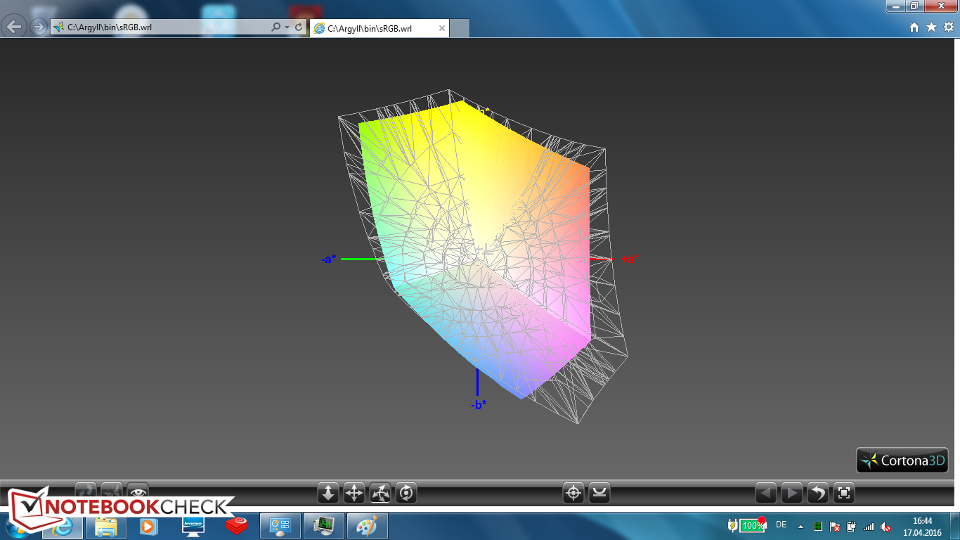 Weder der sRGB- noch der AdobeRGB-Raum kann abgedeckt werden. Dies wäre bei diesem Preisniveau auch nicht üblich. Nur für den professionellen Bildbearbeitungsbereich sind diese Abdeckungen von Relevanz. Auch die DeltaE-Abweichungen der Farben und Graustufen sind mit Werten um 10 im Normalbereich des Displaytyps. Leider ist ein Blaustich auch mit freiem Auge wahrnehmbar. Dieser verschwindet bei einer Kalibrierung gänzlich (verlinktes Farbprofil oben). Bessere Ergebnisse kann das HP ProBook 430 G3 auch hier nicht aufweisen.