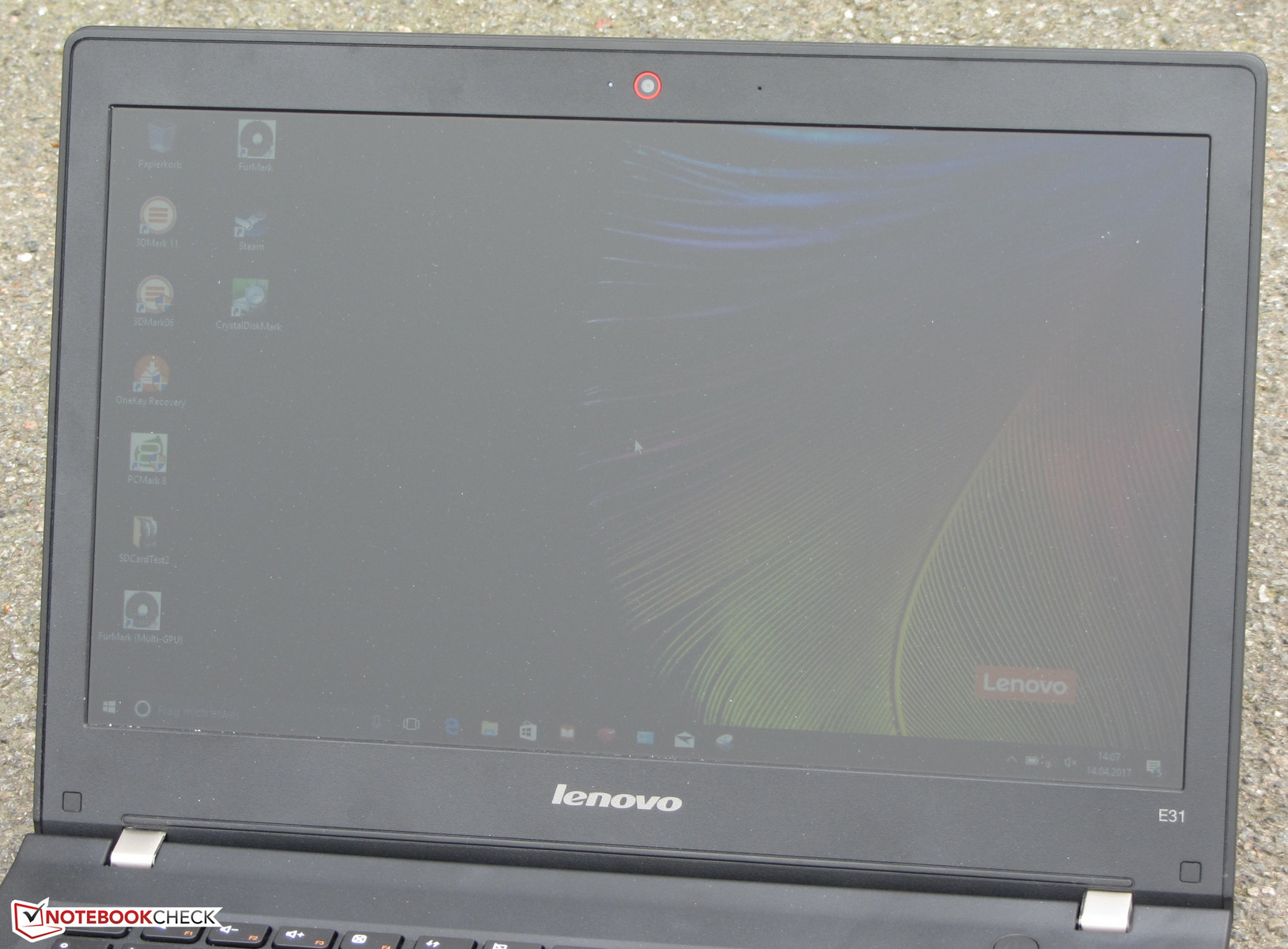 Wie bei so vielen Notebooks stellt auch beim E31-80 der Bildschirm den größten Schwachpunkt dar. Lenovo entscheidet sich hier für ein dunkles, kontrastarmes, blickwinkelinstabiles Modell. Preise wird das Display nicht gewinnen. Kritik gebührt ebenfalls dem nur einjährigen Garantiezeitraum. Wir erwarten heutzutage eine zweijährige Garantie. Auch vermissen wir einen Typ-C-USB-Steckplatz.